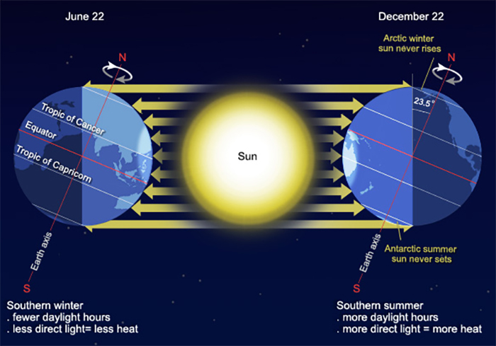 In the Southern Hemisphere, this happens when our side of Earth is tilted closest to the sun. As a result, the sun's rays hit the Earth more directly, leading to extended daylight hours and the sun appearing higher in the sky.
